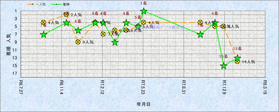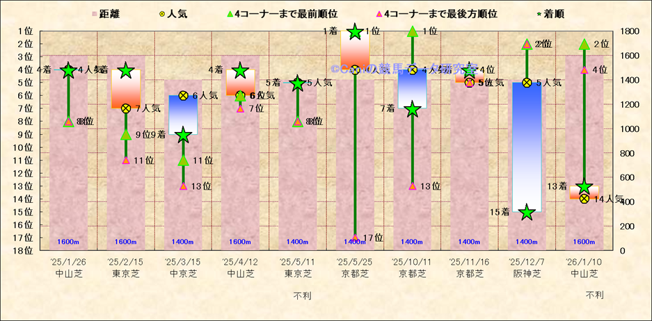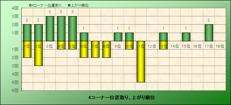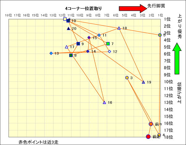 脚質解析 近20レースの4コーナーでの位置取りと上がり順位(頭数補正後) |