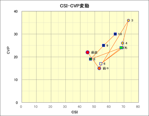 近走における4コーナーでの位置取りと上がり順位(頭数補正後) |