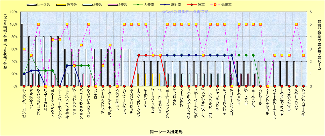 ライバル(相性)解析 同一レースに下記馬が出走した場合の成績とその馬に先着する先着率 |