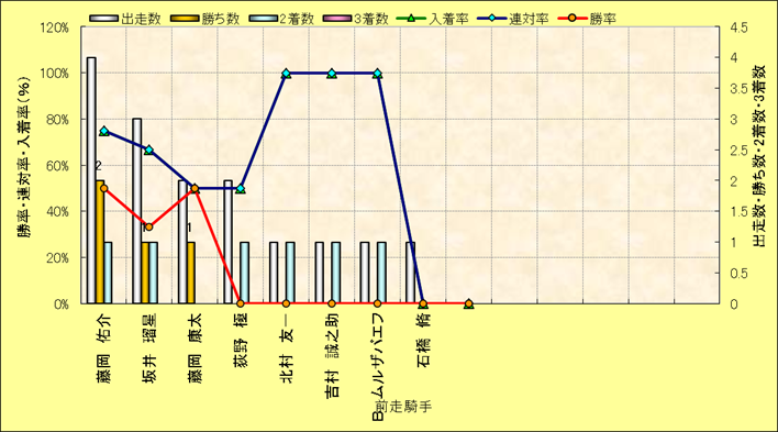 ライバル(相性)解析 同一レースに下記馬が出走した場合の成績とその馬に先着する先着率 |