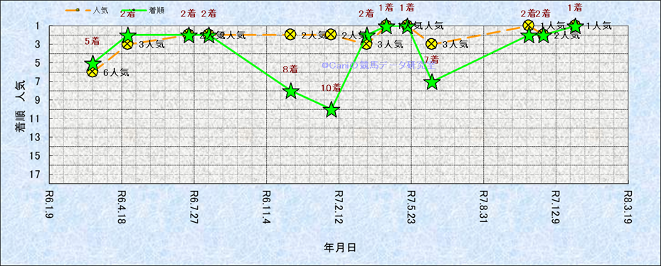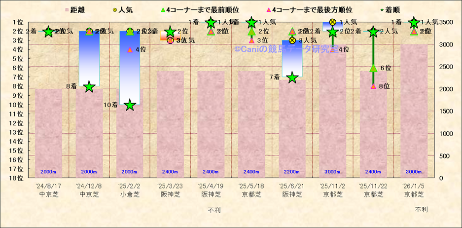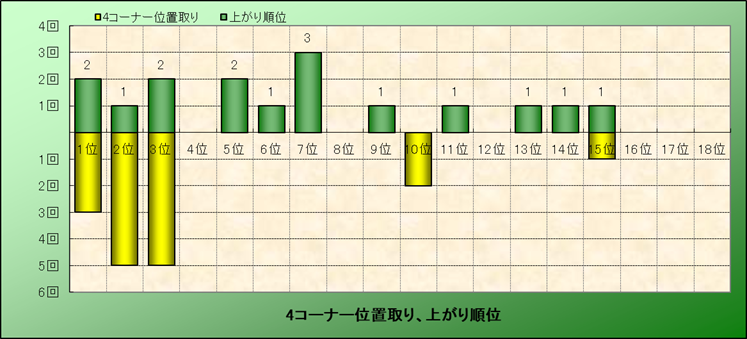 脚質解析 近20レースの4コーナーでの位置取りと上がり順位(頭数補正後) |