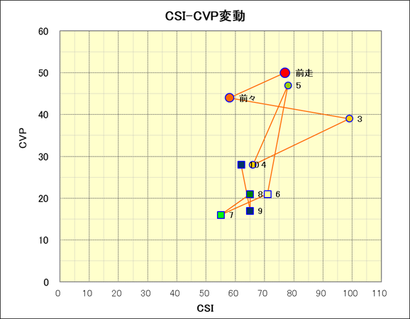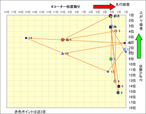 近走における4コーナーでの位置取りと上がり順位(頭数補正後) |