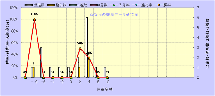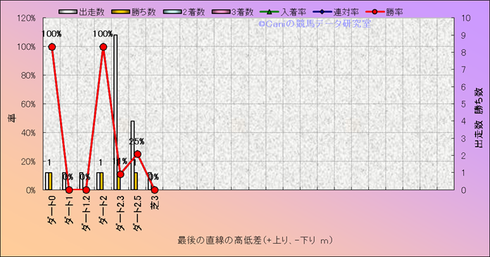 コース、最後の直線の高低差別成績(平地) |