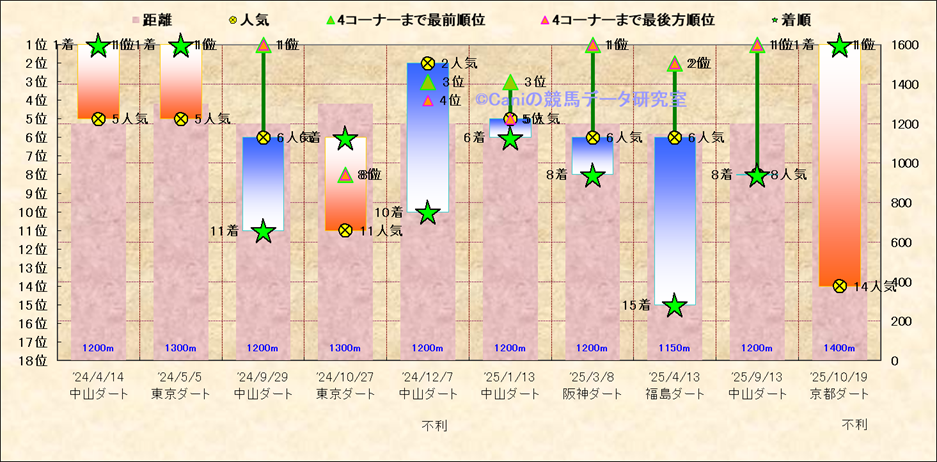 近10走 人気−着順-位置取りの推移 |