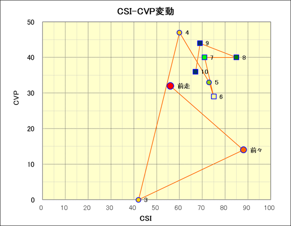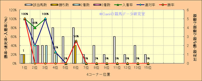近走における4コーナーでの位置取りと上がり順位(頭数補正後) |