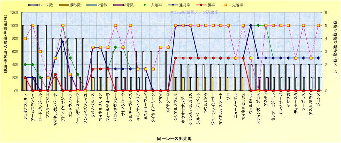 ライバル(相性)解析 同一レースに下記馬が出走した場合の成績とその馬に先着する先着率 |