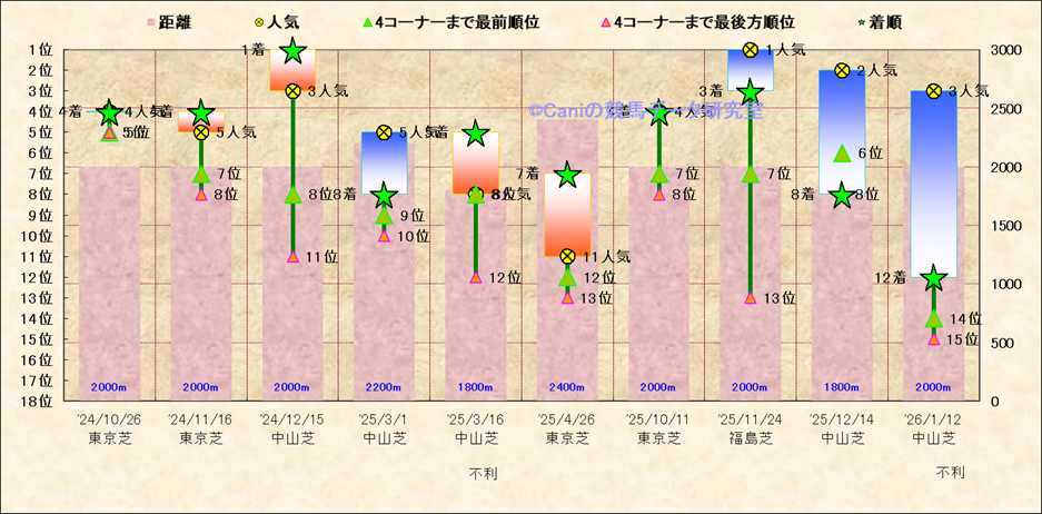 近10走 人気−着順-位置取りの推移 |