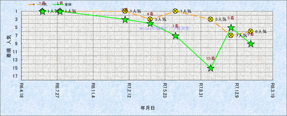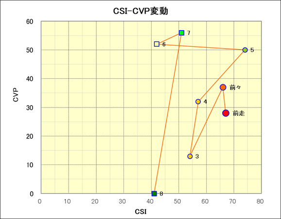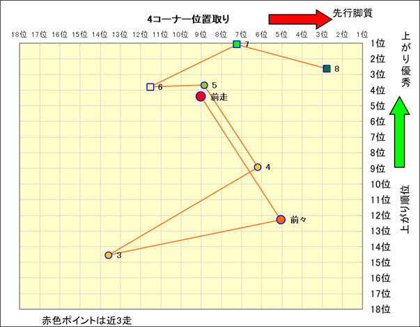 近走における4コーナーでの位置取りと上がり順位(頭数補正後) |