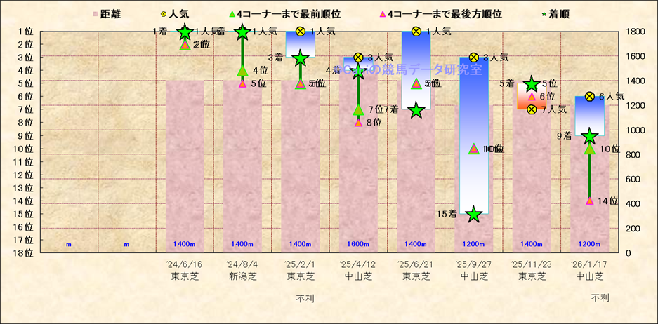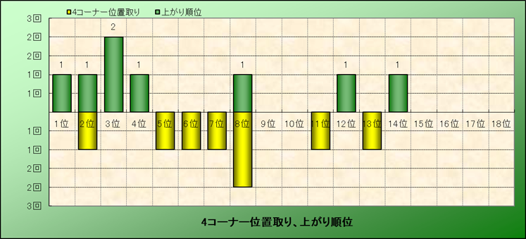 脚質解析 近20レースの4コーナーでの位置取りと上がり順位(頭数補正後) |