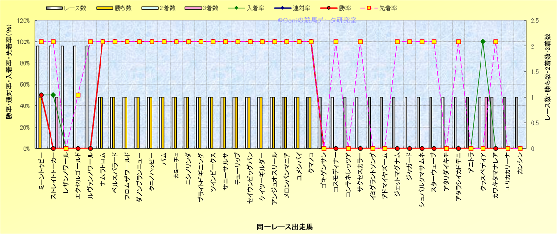 ライバル(相性)解析 同一レースに下記馬が出走した場合の成績とその馬に先着する先着率 |