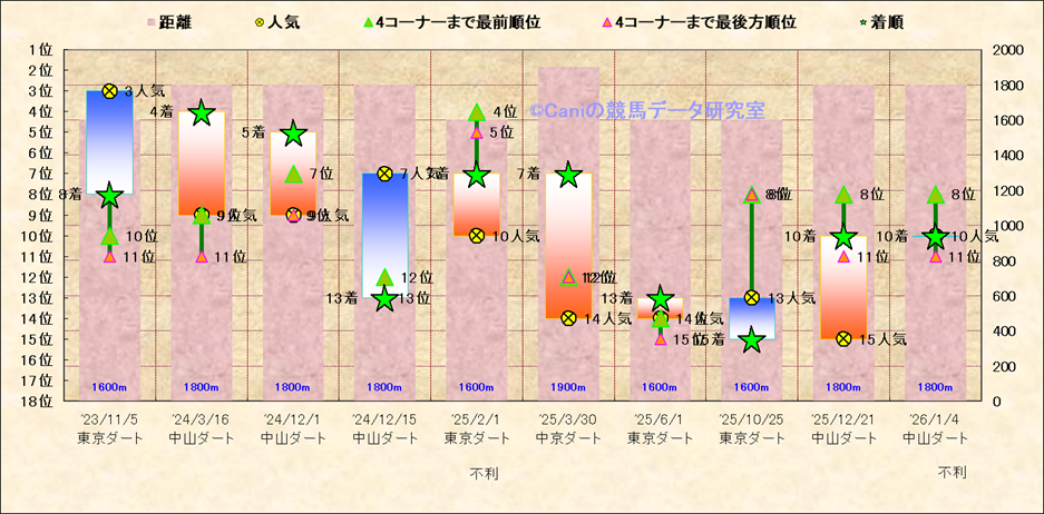 近10走 人気−着順-位置取りの推移 |