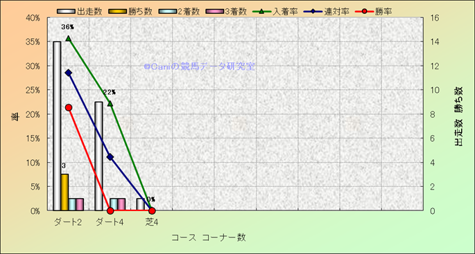 コース、コーナー数別成績(平地) |
