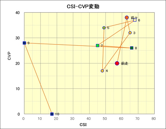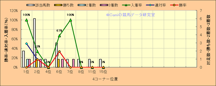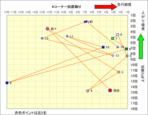 近走における4コーナーでの位置取りと上がり順位(頭数補正後) |