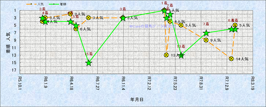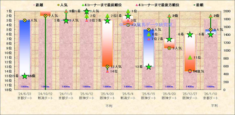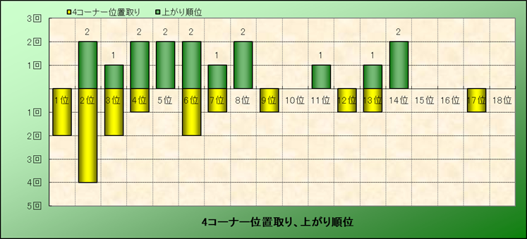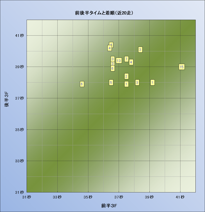 脚質解析 近20レースの4コーナーでの位置取りと上がり順位(頭数補正後) |