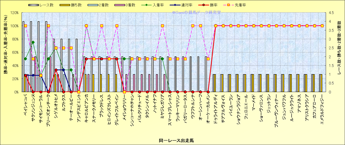 ライバル(相性)解析 同一レースに下記馬が出走した場合の成績とその馬に先着する先着率 |