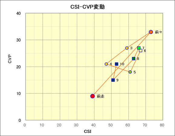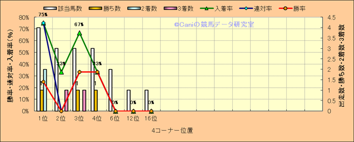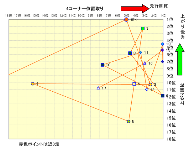 近走における4コーナーでの位置取りと上がり順位(頭数補正後) |