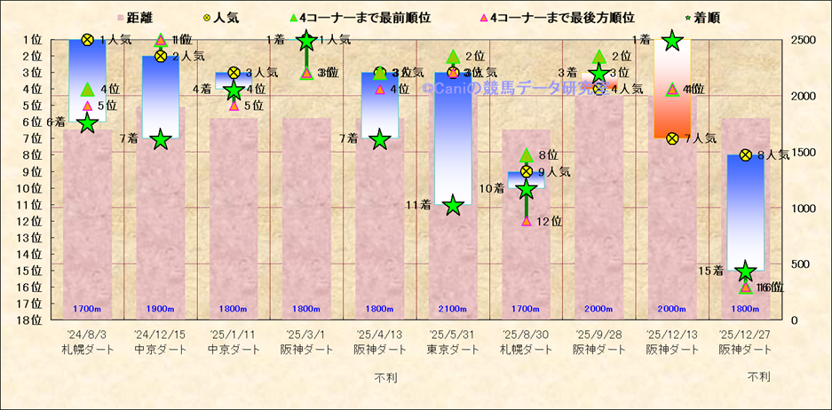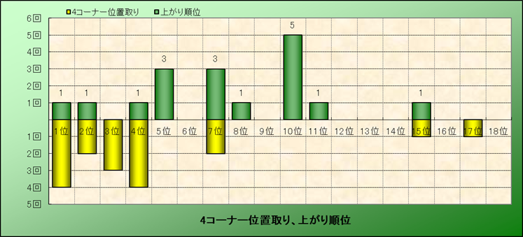 脚質解析 近20レースの4コーナーでの位置取りと上がり順位(頭数補正後) |