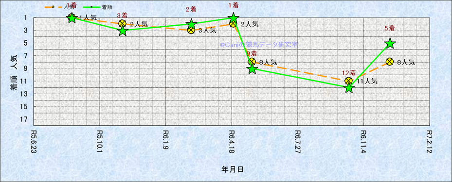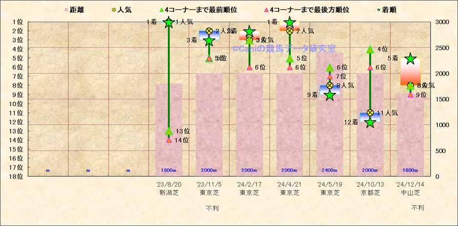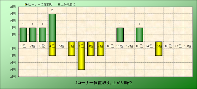 脚質解析 近20レースの4コーナーでの位置取りと上がり順位(頭数補正後) |