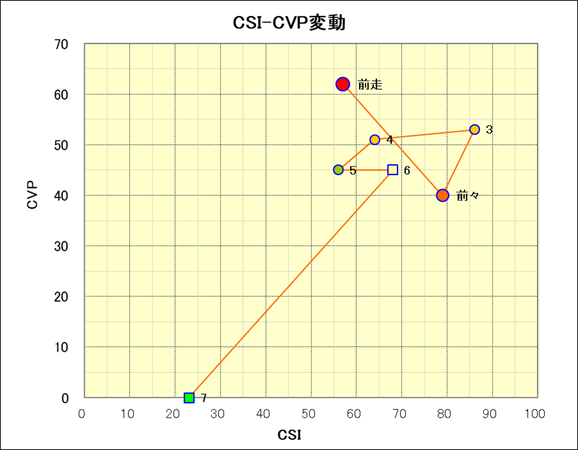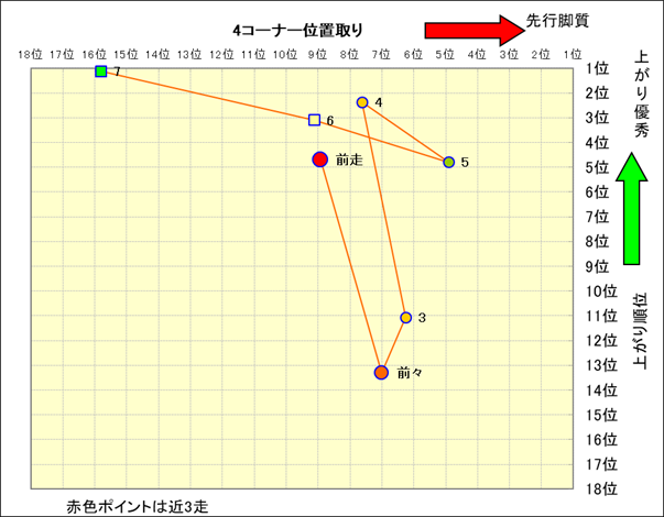 近走における4コーナーでの位置取りと上がり順位(頭数補正後) |