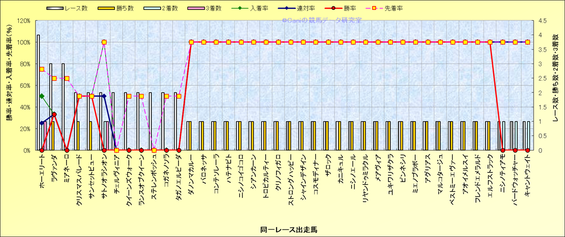 ライバル(相性)解析 同一レースに下記馬が出走した場合の成績とその馬に先着する先着率 |