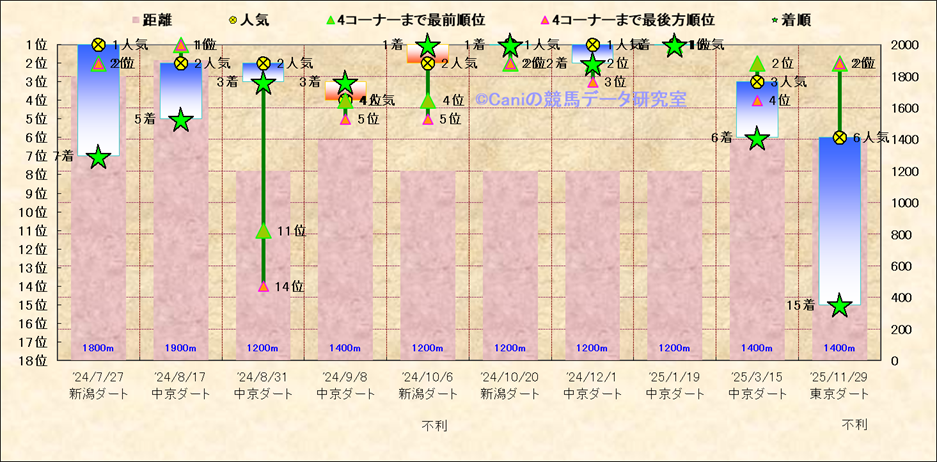 近10走 人気−着順-位置取りの推移 |