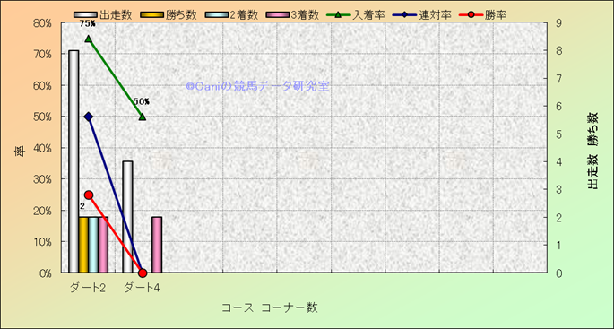 コース、コーナー数別成績(平地) |