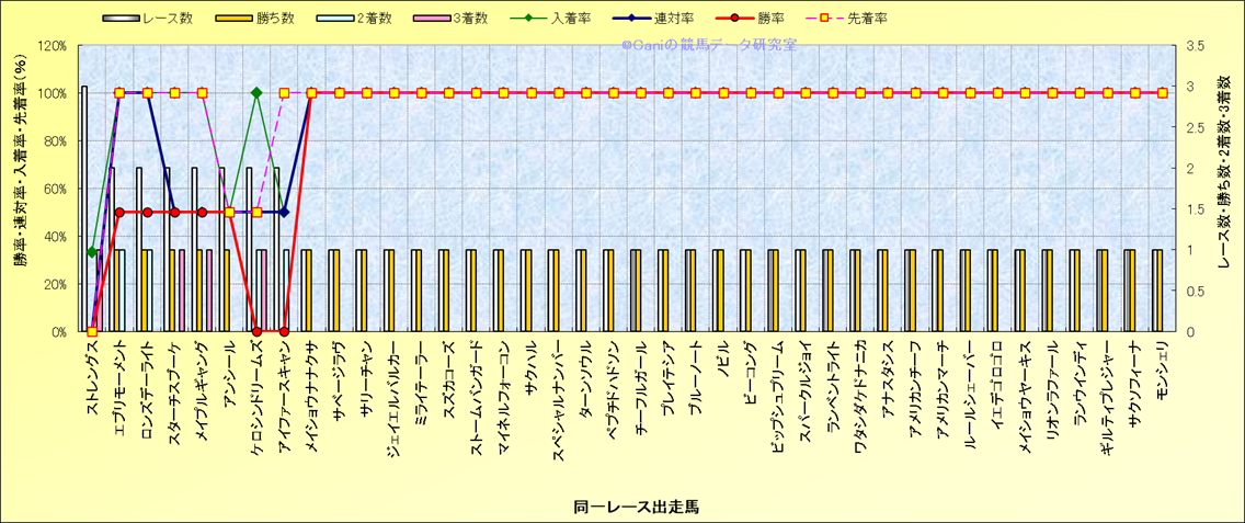 ライバル(相性)解析 同一レースに下記馬が出走した場合の成績とその馬に先着する先着率 |