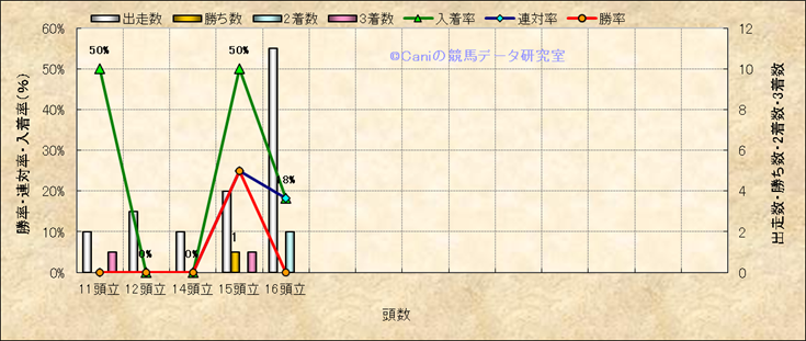 コース、最後の直線の高低差別成績(平地) |