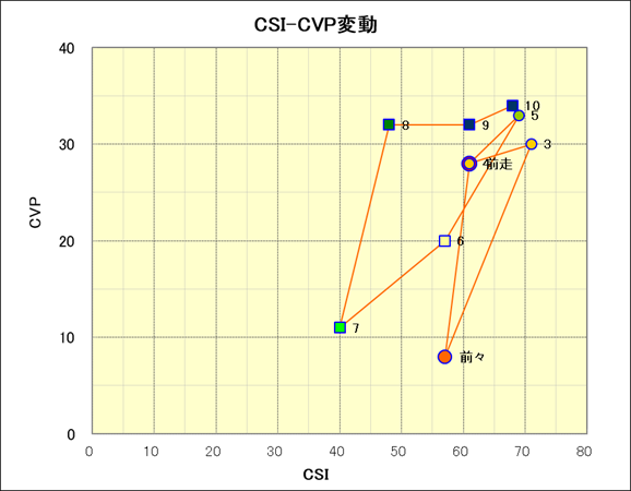 走行距離とCSI値の相関 |