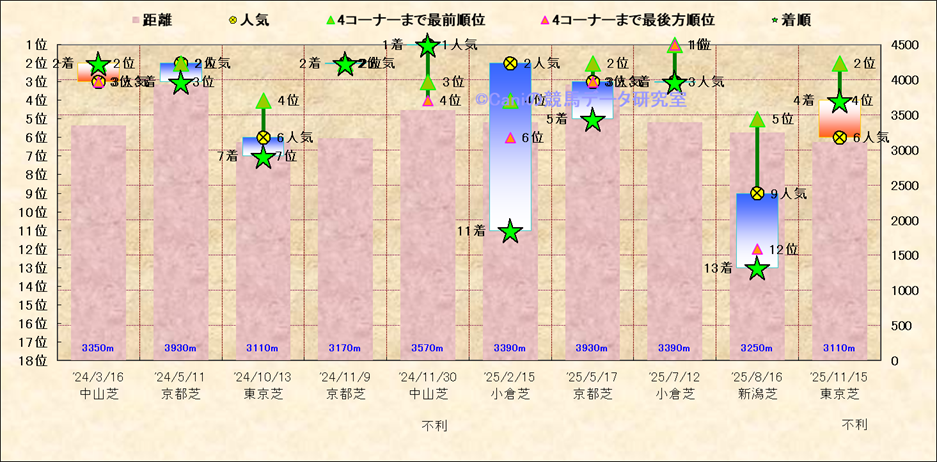 近10走 人気−着順-位置取りの推移 |