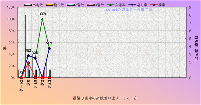 コース、最後の直線の高低差別成績(平地) |
