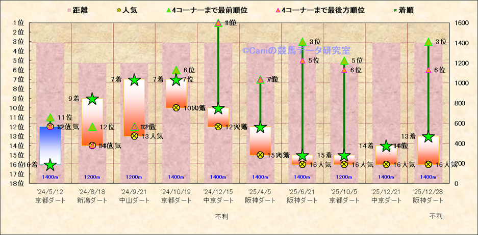脚質解析 近20レースの4コーナーでの位置取りと上がり順位(頭数補正後) |