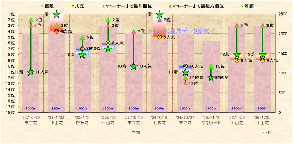 近10走 人気−着順-位置取りの推移 |