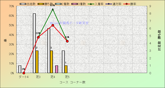 コース、コーナー数別成績(平地) |