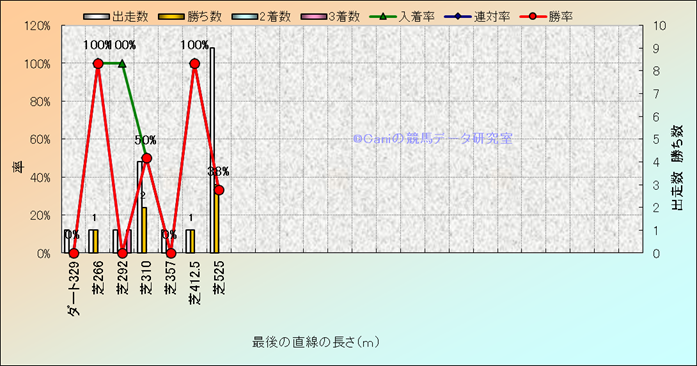 コース、最後の直線の長さ別成績(平地) |