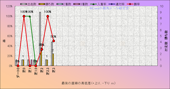 コース、最後の直線の高低差別成績(平地) |
