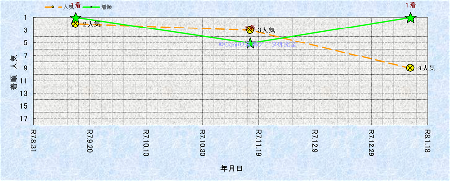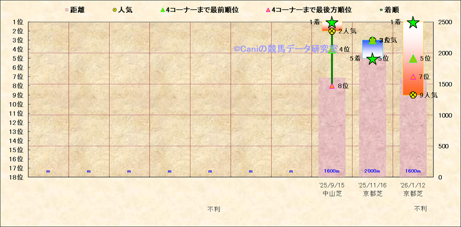 脚質解析 近20レースの4コーナーでの位置取りと上がり順位(頭数補正後) |