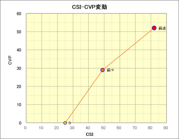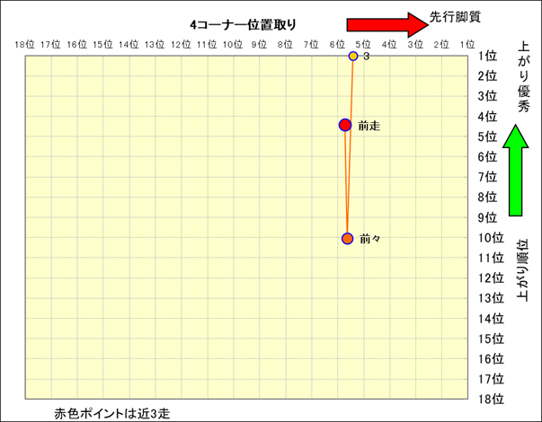 近走における4コーナーでの位置取りと上がり順位(頭数補正後) |