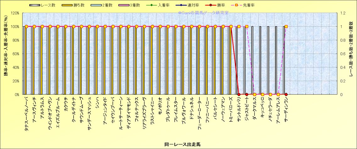 ライバル(相性)解析 同一レースに下記馬が出走した場合の成績とその馬に先着する先着率 |