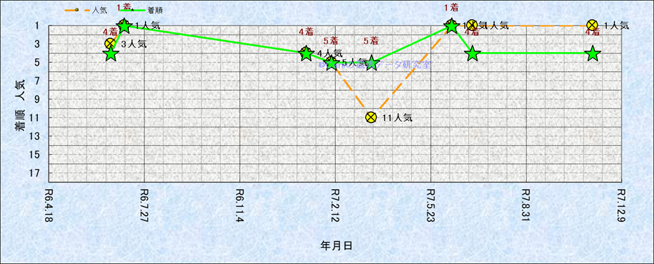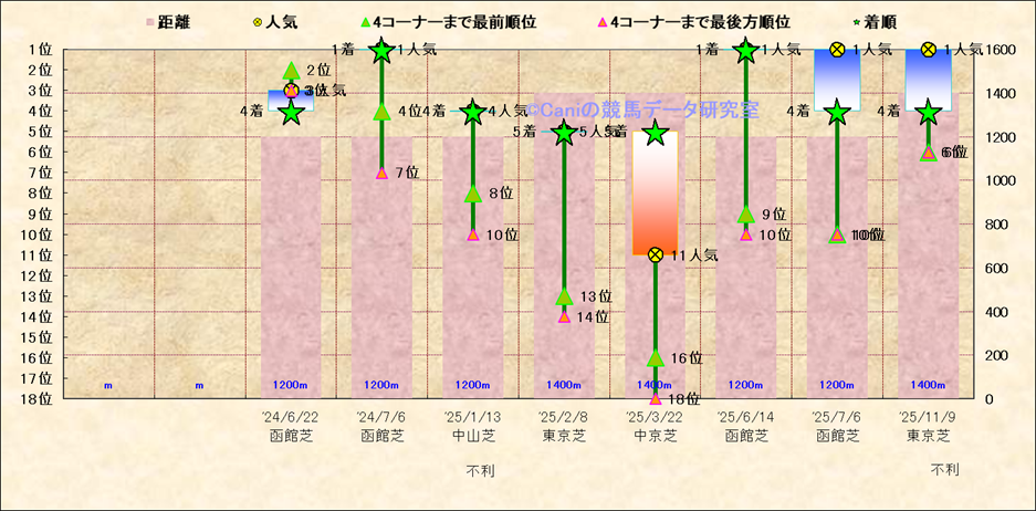 脚質解析 近20レースの4コーナーでの位置取りと上がり順位(頭数補正後) |