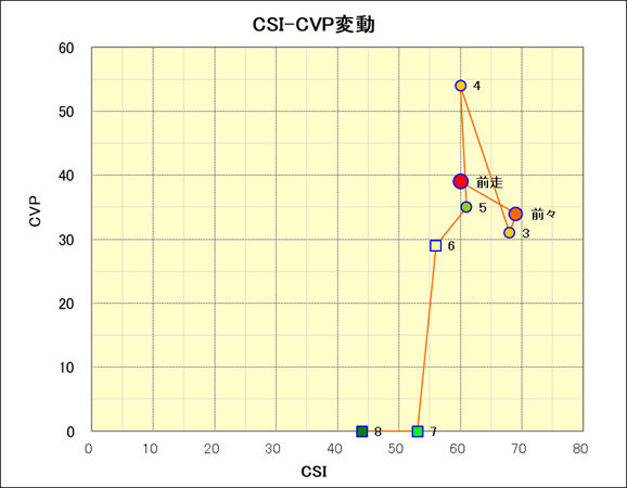 近走における4コーナーでの位置取りと上がり順位(頭数補正後) |