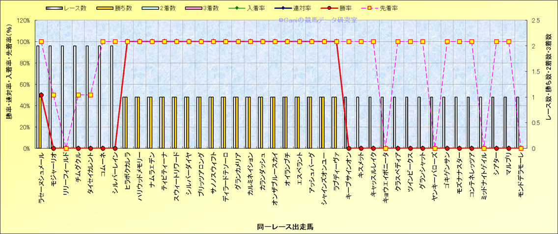 ライバル(相性)解析 同一レースに下記馬が出走した場合の成績とその馬に先着する先着率 |