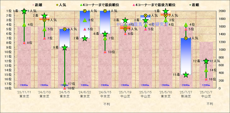 近10走 人気−着順-位置取りの推移 |