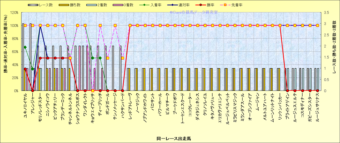 ライバル(相性)解析 同一レースに下記馬が出走した場合の成績とその馬に先着する先着率 |