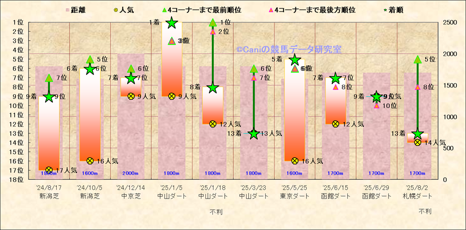 近10走 人気−着順-位置取りの推移 |