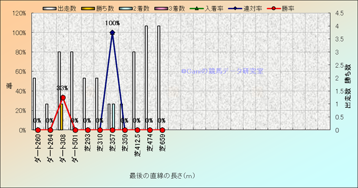 コース、最後の直線の長さ別成績(平地) |