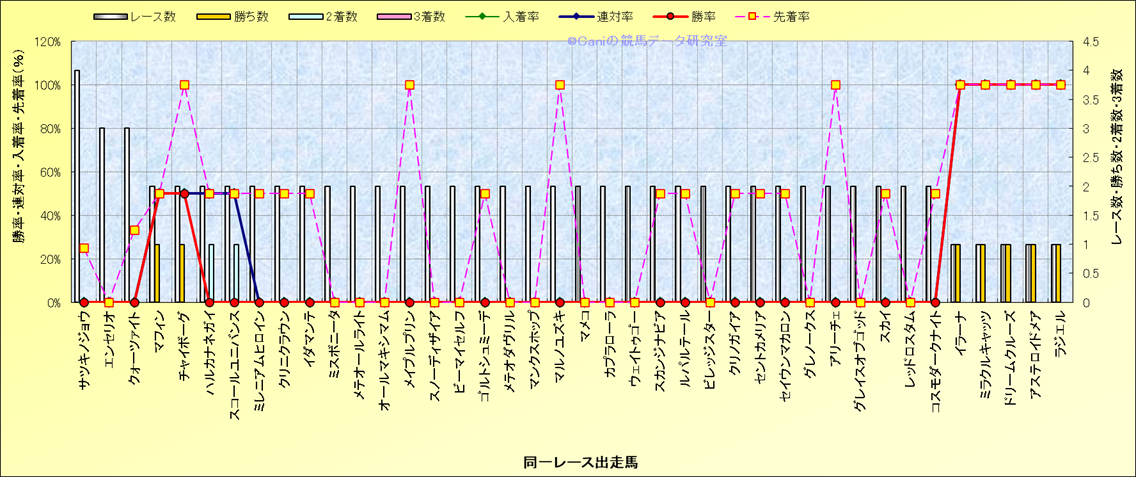 ライバル(相性)解析 同一レースに下記馬が出走した場合の成績とその馬に先着する先着率 |