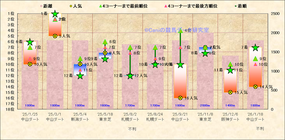 近10走 人気−着順-位置取りの推移 |