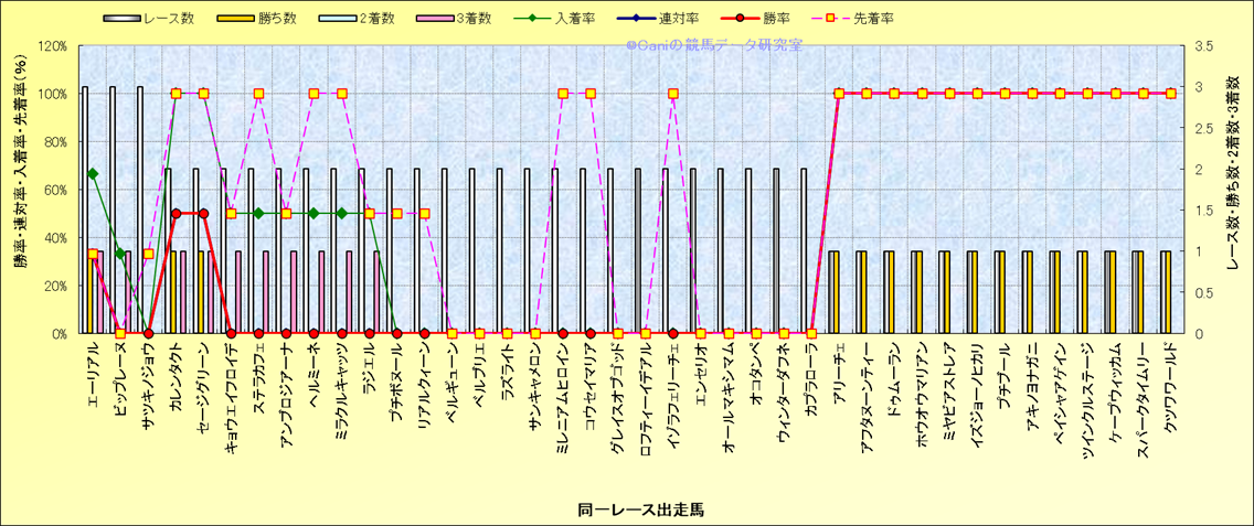 ライバル(相性)解析 同一レースに下記馬が出走した場合の成績とその馬に先着する先着率 |