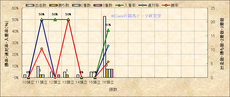 コース、最後の直線の高低差別成績(平地) |